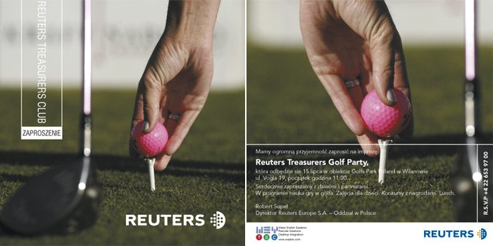 Zaproszenie na Reuters Treasurers Golf Party zaprojektowane dla Reuters Europe oddział Polska.