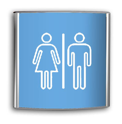 Tabliczka informacyjna, jeden z elementów systemu zaprojektowanego dla fabryki Gillette.